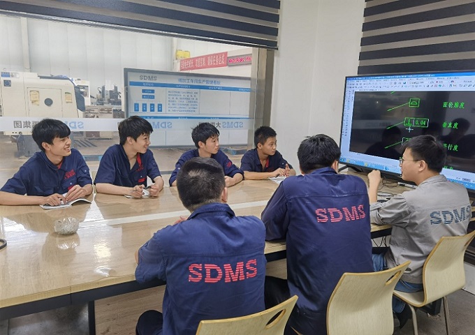 ???????? 公司一直十分重視新生技工隊(duì)伍的培養(yǎng),不但在實(shí)操中為新學(xué)員配備老師,采取“師帶徒模式”指導(dǎo)學(xué)員實(shí)操技能學(xué)習(xí),而且負(fù)責(zé)培訓(xùn)工作的工藝部還針對(duì)學(xué)員制定了詳細(xì)各工種學(xué)習(xí)計(jì)劃,每月定期對(duì)其進(jìn)行系統(tǒng)的機(jī)械理論知識(shí)培訓(xùn)、月月進(jìn)行考核。