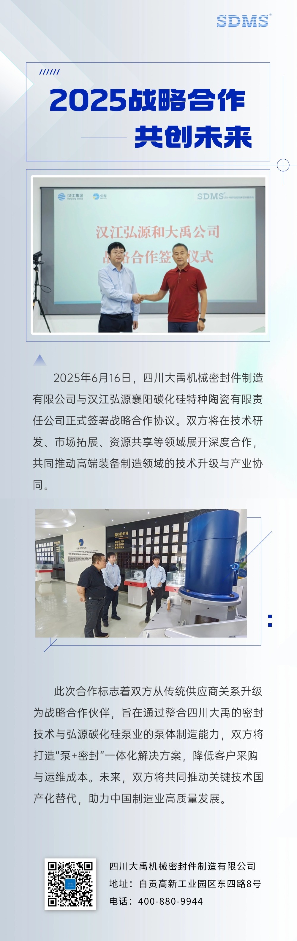 四川大禹機(jī)械密封件制造有限公司與漢江弘源襄陽碳化硅特種陶瓷有限公司簽署戰(zhàn)略合作協(xié)議,共拓高端裝備市場