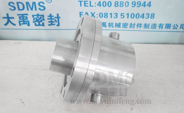 該產(chǎn)品為大禹公司生產(chǎn)的無堵塞離心泵專用機(jī)封,結(jié)構(gòu)形式為集裝式外沖洗單端面結(jié)構(gòu),常用于含固體顆粒較多的工況環(huán)境。