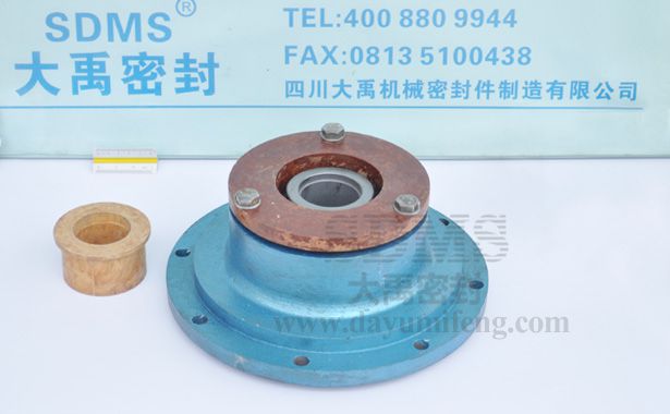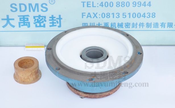 ? ? ? ?FUH型抗腐耐磨離心泵系懸臂離心泵。其軸封采用內(nèi)裝式機械密封,采用外冷卻方式,需要加冷卻水,該密封的動、靜環(huán)由碳化硅制成;葉輪是采用聚乙烯工程塑料在壓制成型中嵌入金屬件制造而成的。拆卸后發(fā)現(xiàn)機械密封的動靜環(huán)密封面被嚴重磨損,甚至動靜環(huán)碎裂;有時葉輪的金屬件與葉輪母體脫落而導致葉輪失效。經(jīng)分析是由于該公司鈷原料舍二氧化硅量大,據(jù)測定含二氧化硅52.4%-63.8%。渣液中含有大量的二氧化硅硬顆粒,微小顆粒進入機械密封面使密封磨損。隨著磨損量的增大,渣液中大硬顆粒也進入密封面,使機械密封面嚴重磨損,甚至動、靜環(huán)碎裂,致使軸封失效、泵泄漏。同時,因渣液含二氧化硅量大,渣液比重也大,使葉輪負荷大。導致葉輪母體穿入葉輪金屬件孔中的那部分工程塑料被剪切而斷裂,使葉輪金屬件與葉輪母體脫落,泵啟動后葉輪金屬件隨泵軸旋轉(zhuǎn)而葉輪母體卻不隨著旋轉(zhuǎn),因而出現(xiàn)泵啟動后不出液的故障。? ? ? ??